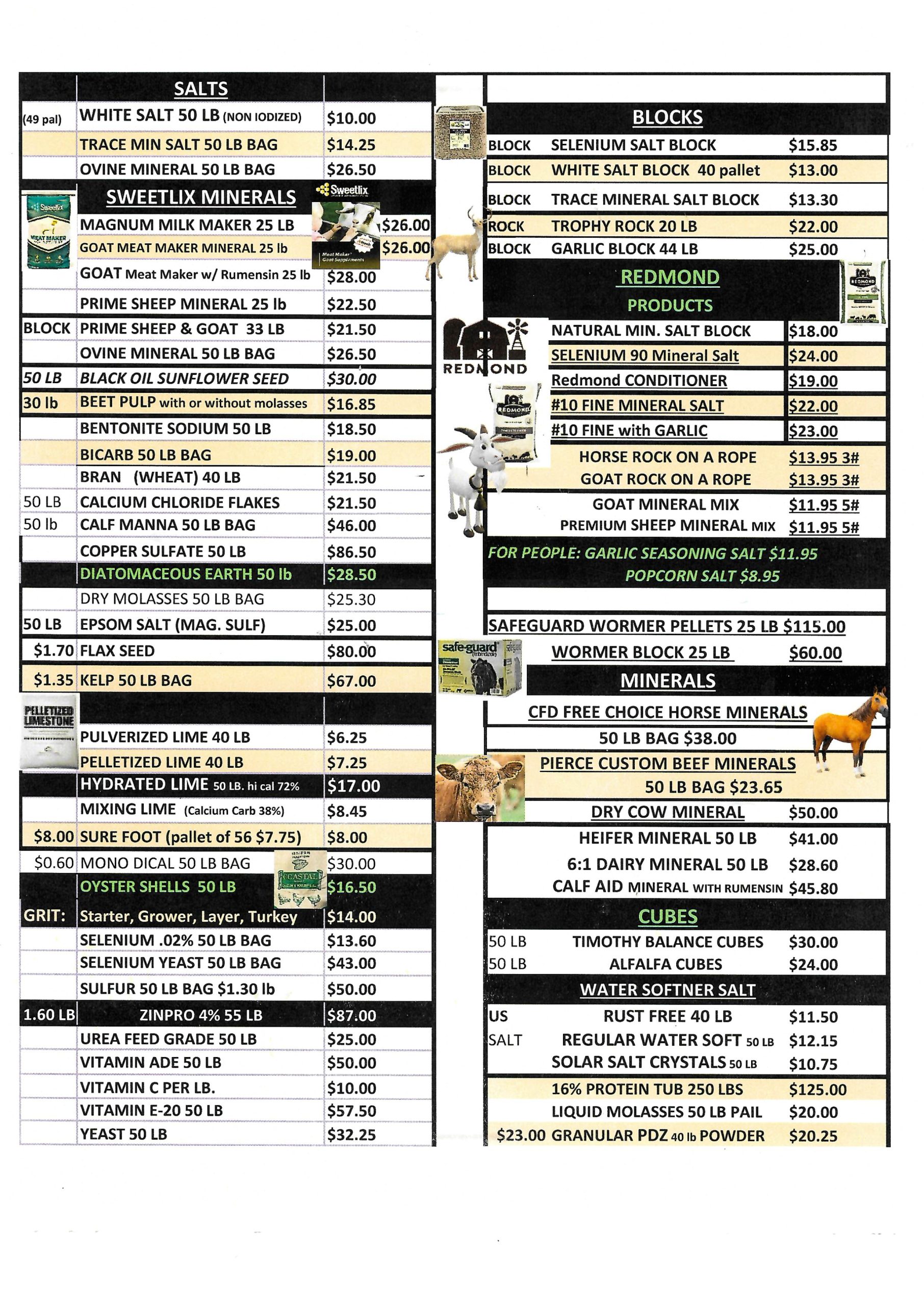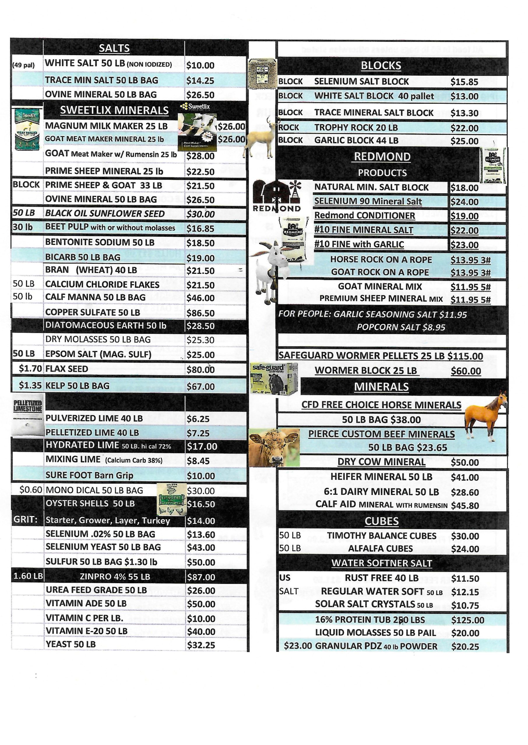 Prices are per 50 lbs. unless stated otherwise