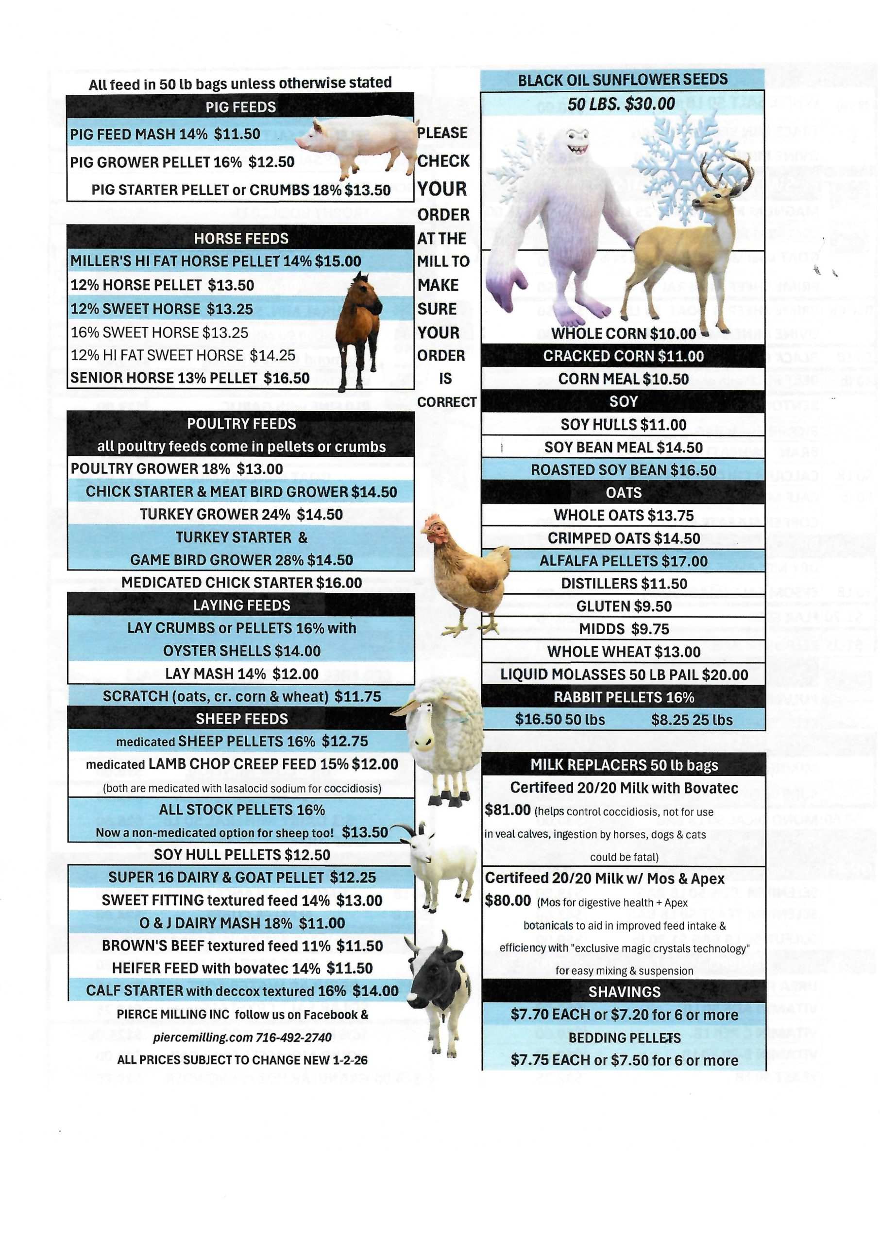 If you are ordering more than 1,000 lbs (20 – 50 lb bags) of any one feed, please give us 24 hours notice.