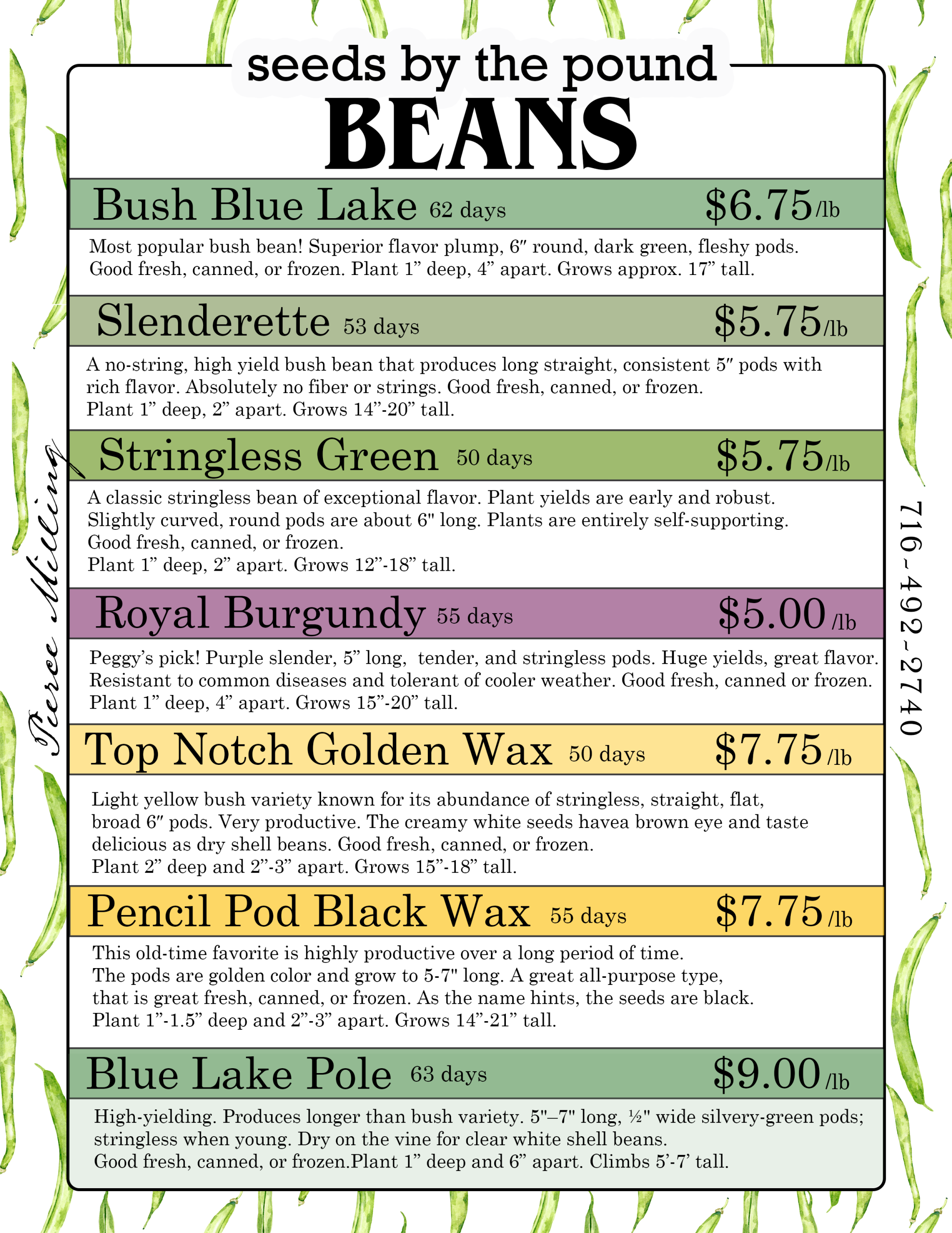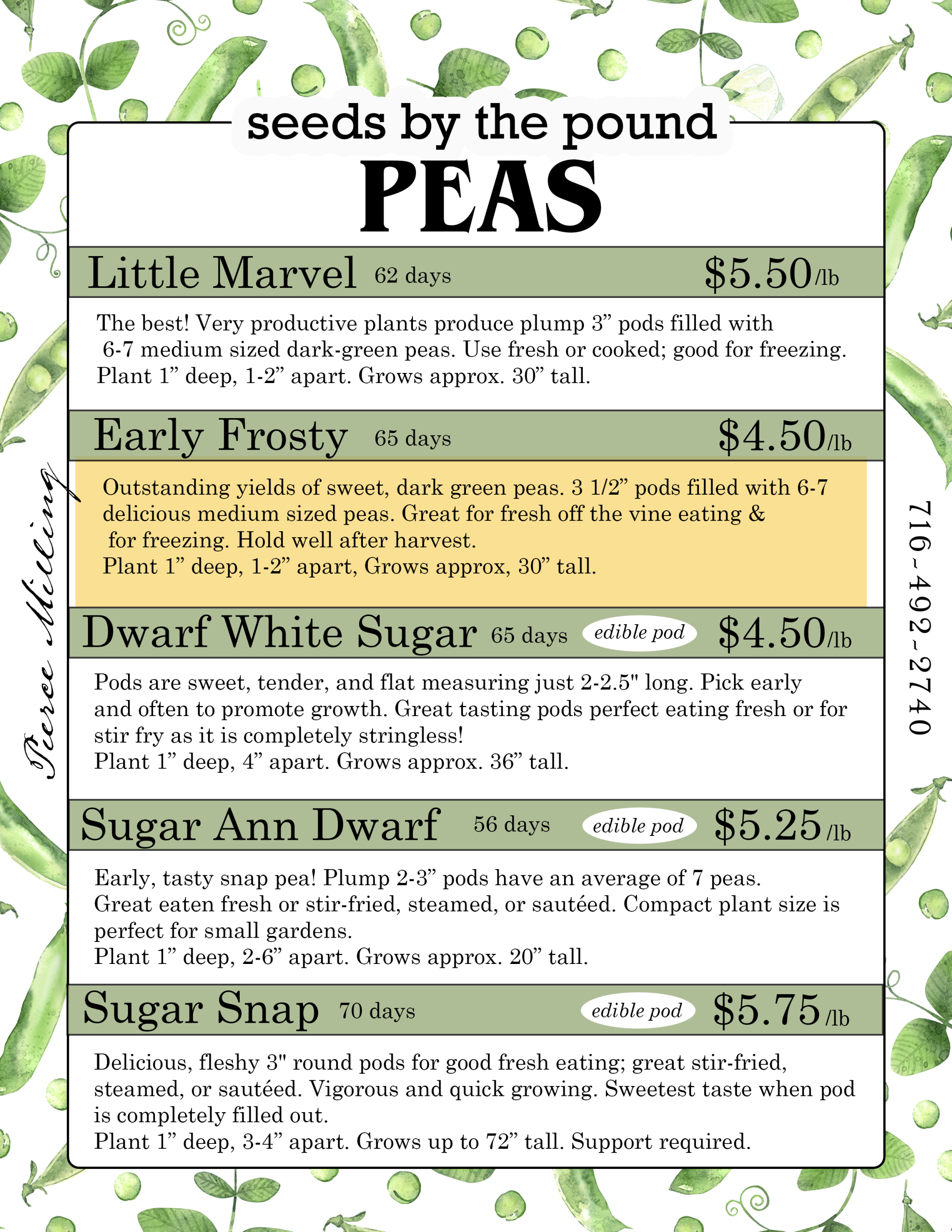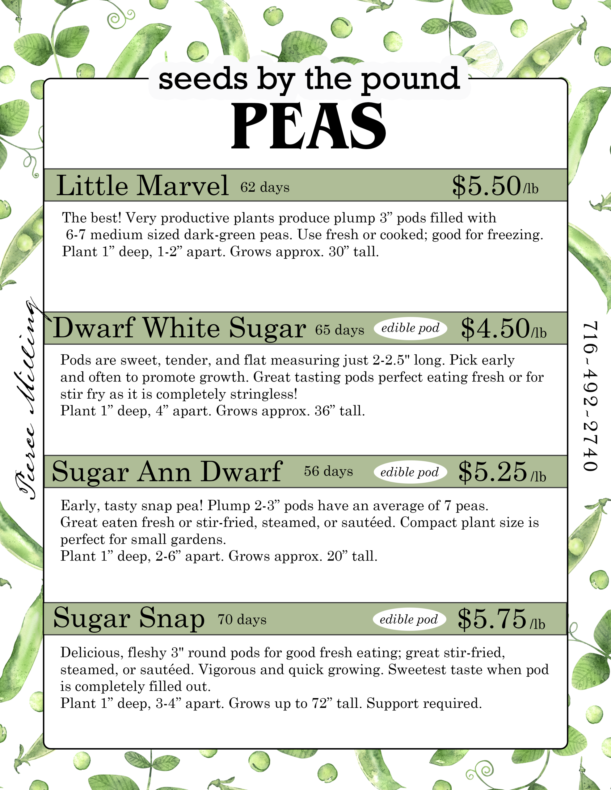 Planting a large garden? Let us scoop up what you need! Our bulk seeds are a great way to get large quantities of seeds at great prices. We can weigh up as little as a handful (a tenth of a pound) or as much as you’d like.